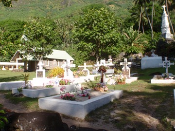 Kirche und Friedhof in Hanatefou / Tahuata
