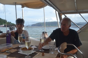 Wir feiern mit Ingrid und Jan vom Kat. Tacman unsere Ankunft!